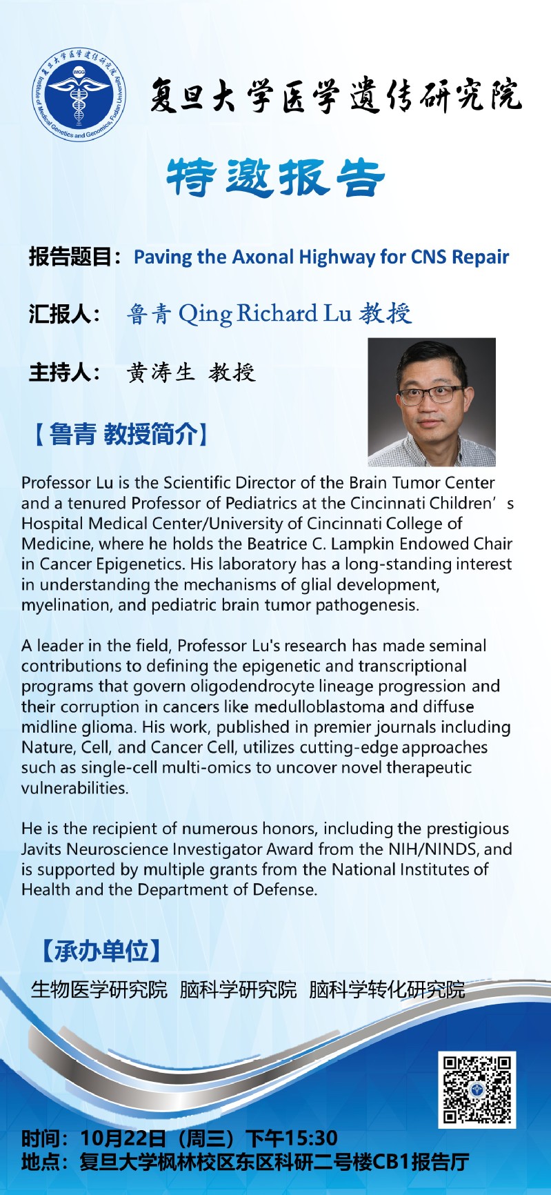特邀报告:Paving the Axonal Highway for CNS Repair