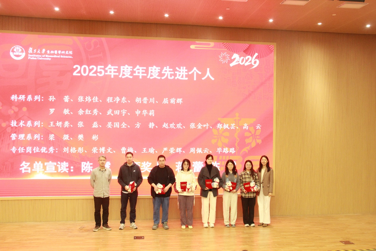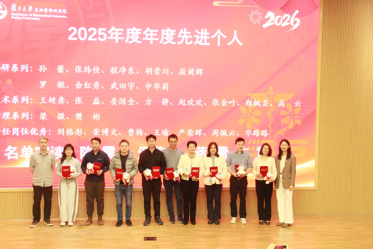 葛均波院长在报告中指出2025年适逢建院20周年,这不仅是发展历程中的重要节点,更是一个承前启后、再启新篇的关键里程碑。在复旦大学建校120周年纪念日前夕,在全院师生的大力支持和共同努力下,我们成功举办了IBS建院20周年系列庆祝活动。本次活动以“廿载风华,传承创新”为主题,系统回顾了研究院二十年来的发展历程与重要成就,并对生物医学交叉研究的未来前景进行了展望。随后他总结报告了2025年度的各项成果,全院师生以IBS作为第一作者单位(含共同)或通讯作者单位(含共同)发表SCI论文突破200篇,其中在Nature (2篇)和Cell 上发表3篇。IBS全聘课题组新立项各类项目总数50余项,总牵头立项经费超过1.4亿元,其中,牵头部委重大项目2项。研究院人才培育工作卓有成效,蓝斐老师获杰青延续支持并入选“尚思学者”,武田宇老师入选教育部U40人才计划并获上海市“曙光计划”,多位老师入选上海市东方英才、上海市教委优才揽蓄项目、校内“两卓”计划等。过去一年,研究院积极邀请海内外专家开展学术报告40余场,为师生提供了丰富的学术交流平台,多位高水平杂志的主编或编辑到访交流,进一步提升了研究院的学术影响力与国际显示度。葛均波院长还带领全院师生展望2026年主要工作任务,他指出,首先要做好“十五五”规划编制实施,深入推进准聘-长聘制度改革,结合岗位评聘标准,加快构建以立德树人、创新引领和突出贡献为导向的复合型人才评价体系。其次要高度重视党中央在《关于制定国民经济和社会发展第十五个五年规划的建议》中提出的“科技自立自强水平大幅提高”的核心目标,以这一最高要求来审视和谋划IBS未来的发展路径。在整体资源紧张的情况下,要积极拓展多元化的资源筹措渠道,大力开拓横向合作与社会资源。最后,葛均波院长强调,研究院应始终聚焦人才培养、科研攻关、转化创新以及高水平开放合作,以实干推动研究院发展再上新台阶,为服务国家科技自立自强战略、增进人类健康福祉作出新的卓越贡献。